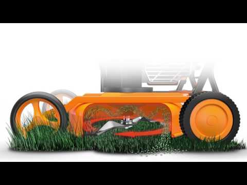 Die doppelt kugelgelagerten Leichtlauf-Räder drücken möglichst wenig Gras nach unten, sodass alles gemäht werden kann. |
