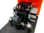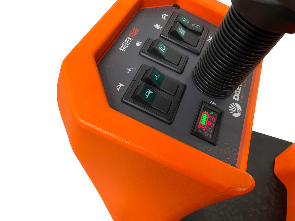 Die Aufsitz  Kehrmaschine wird von einem 700-Watt-Motor angetrieben, der von vier 48V/65Ah Batterien gespeist wird. Diese Batterien bieten nicht nur eine zuverlässige Energiequelle, sondern ermöglichen auch ein geräuscharmes und emissionsfreies Reinigungserlebnis. Mit einer vollen Batterieladung kann die Daewoo DAS80 etwa 2-2,5 Stunden betrieben werden, bevor eine erneute Aufladung erforderlich ist.