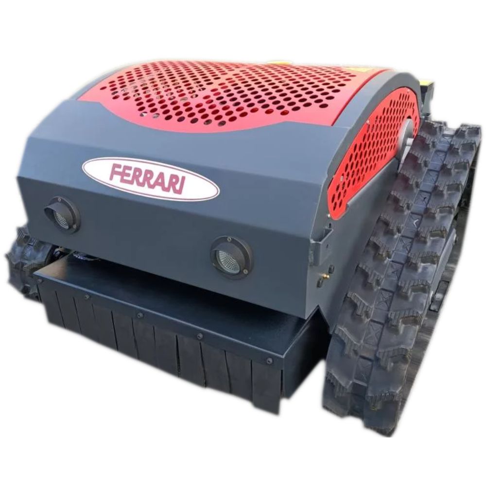 Der Ferrari RC-53 verfügt über einen tieferen Schwerpunkt, eine ausbalancierte Gewichtsverteilung und ein Raupenfahrwerk, was einen bodenschonenden und sicheren Einsatz in Hängen mit bis zu 30° Hangtauglichkeit ermöglicht.