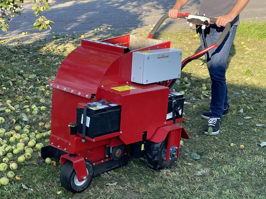 Mit einem optionalen Nusskit können auch Nüsse, wie Walnüsse, geerntet werden. Hierbei arbeitet der Obstblitz mit zwei Batterien à 24 Volt. Der Obstblitz OB 40 mit elektrischem Fahrantrieb ist somit die perfekte Maschine für alle, die Kleinmengen emissionsfrei und geräuscharm bewirtschaften wollen.