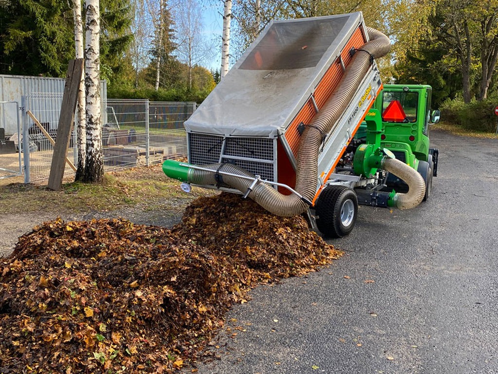 Aufgrund der schnellen und einfachen Demontage der Laubausrüstung (Saugeinheit) können Foresteel-Laubanhänger auch als herkömmliche Kippanhänger für die gesamte Saison verwendet werden (die Demontage dauert weniger als 30 Minuten). Basierend auf dem modularen Aufbau sind unsere Laubsammelmaschinen im 2-in-1-Design, sodass du einen Kippanhänger und einen Laubsauganhänger in einer Maschine hast.