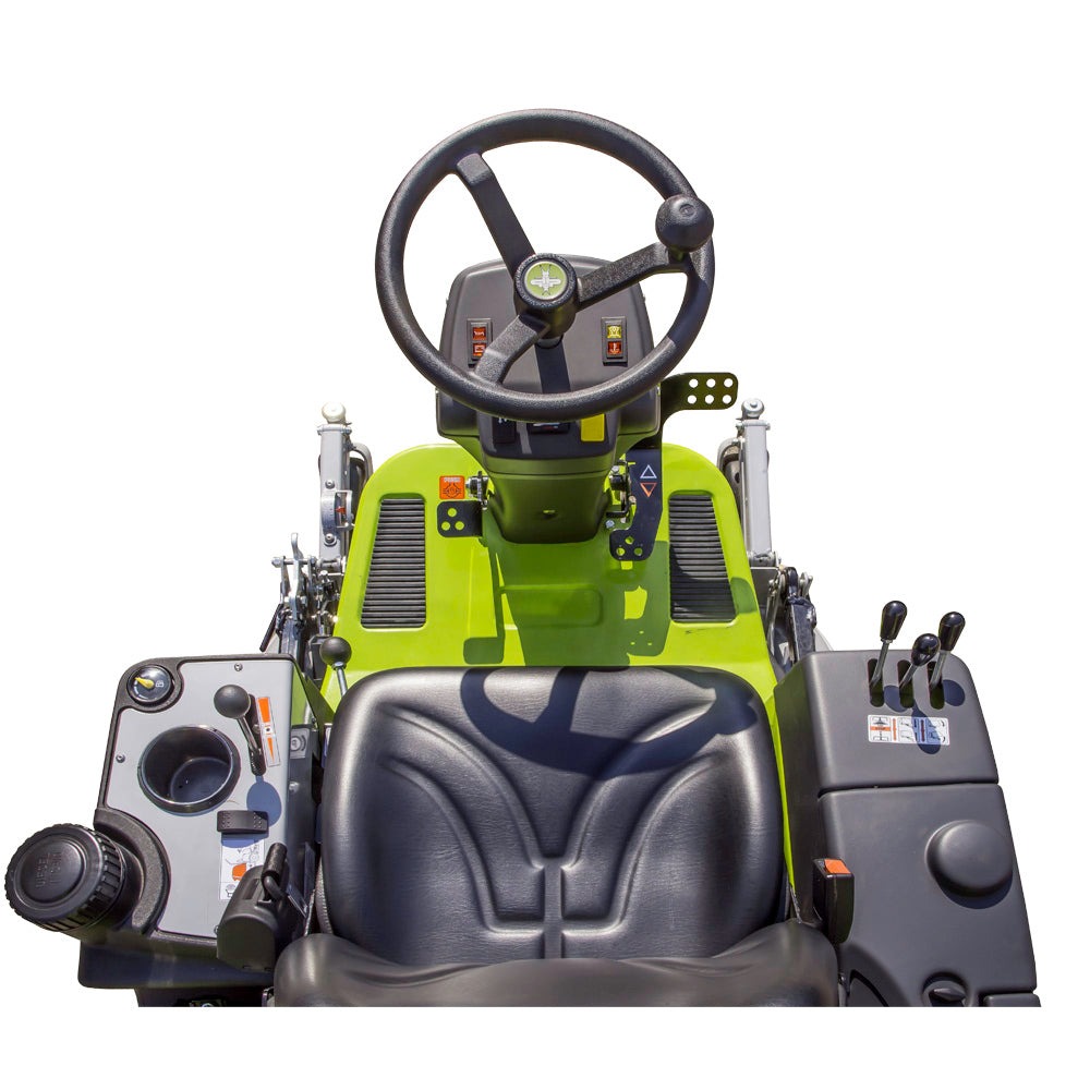 Kubota-Dieselmotor und hohem Fahrkomfort Der FD 500 ist mit einem 18 PS 3 Zylinder Kubota D722 Dieselmotor ausgestattet, welcher mit den EC (NRMM) STAGE V (Europa) und EPA Tier 4 (USA) Normen konform ist. Er ist auf Silent-Blöcken in einem robusten, aus einem einzigen Stück gefertigten Rahmen zum Schutz der Hauptkomponenten des Aufsitzmähers gebaut wurde. Die Maschine hat einen geräumigen und komfortablen, ergonomischen und regulierbaren Fahrersitz. Der Lenker mit Servolenkung garantiert einen geringen Kraftaufwand auch bei voller Beladung. |