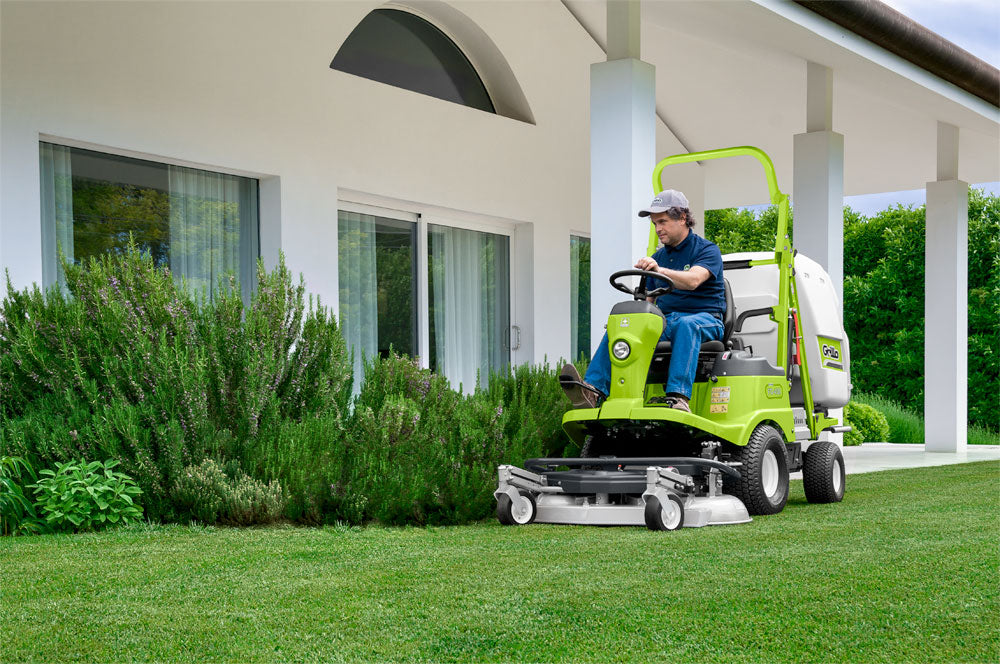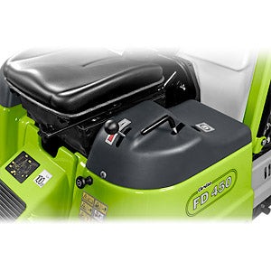 Die Frontmontage des Mähdecks sorgt für optimale Übersicht, kompakte Bauweise und geringer Lenkeinschlag machen den FD 450 wendig und leicht zu manövrieren – selbst an engen Stellen. Schnitthöhe, Mähdeckanhebung und Grasfangkorb lassen sich bequem per Knopfdruck vom Fahrersitz aus bedienen.
