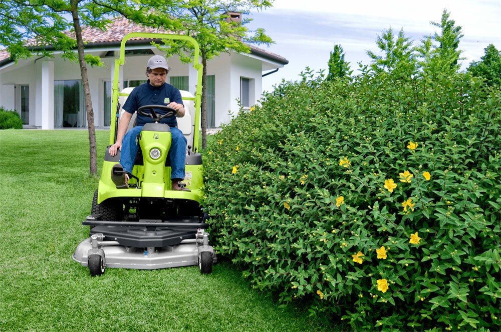- Frontal montiertes Mähdeck – perfekte Übersicht auf die zu bearbeitende Fläche