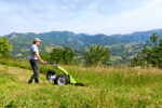 Sicher am Hang – Stabilität ohne Kompromisse Die Gewichtsverteilung des GF3 DF wurde unter dem Aspekt entwickelt, die Stabilität beim Mähen an Hängen zu erhöhen. Für eine weitere Erhöhung der Stabilität an Hängen sind Radverbreiterung bei Grillo erhältlich, so dass eine Spurbreite bis zu 24 cm erreicht werden kann, Reifenprofile mit einer hohen Bodenhaftigkeit und einem seitlich verstellbarem Lenkholm. |