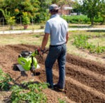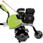 Mechanisches Schaltgetriebe im Ölbad Das mechanische Schaltgetriebe mit Zahnrädern im Ölbad hat 2 Vorwärtsgänge und einen Rückwärtsgang; der Ganghebel ist bequem erreichbar. Der erste Gang ist zum Aufbrechen der oberflächlichen Erdkruste, und der zweite Gang zerkleinert den Boden fein. |