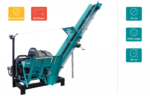 Für den Antrieb des Förderbands besitzen die Modelle WSK 7F-Z, WSK 7F-Z8 und WSK 7F-Z10 eine eigene Ölversorgung , während das Modell WSK 7F-T durch die Traktorhydraulik betrieben wird. Mithilfe einer wartungsfreundlichen Handseilwinde lässt sich das Förderband einfach aus der kompakten Transportstellung ausfahren und in der gewünschten Höhe fixieren. Der speziell textilummantelte Noppen-Fördergurt sorgt für einen zügigen Abtransport, wobei die Fördergeschwindigkeit über ei stufenlos von 0 bis 91 cm/sec reguliert werden kann. Der Holzzuführschacht ist so konstruiert, dass Restholzstücke einfach mit dem nächsten Scheit weitergeschoben werden können.