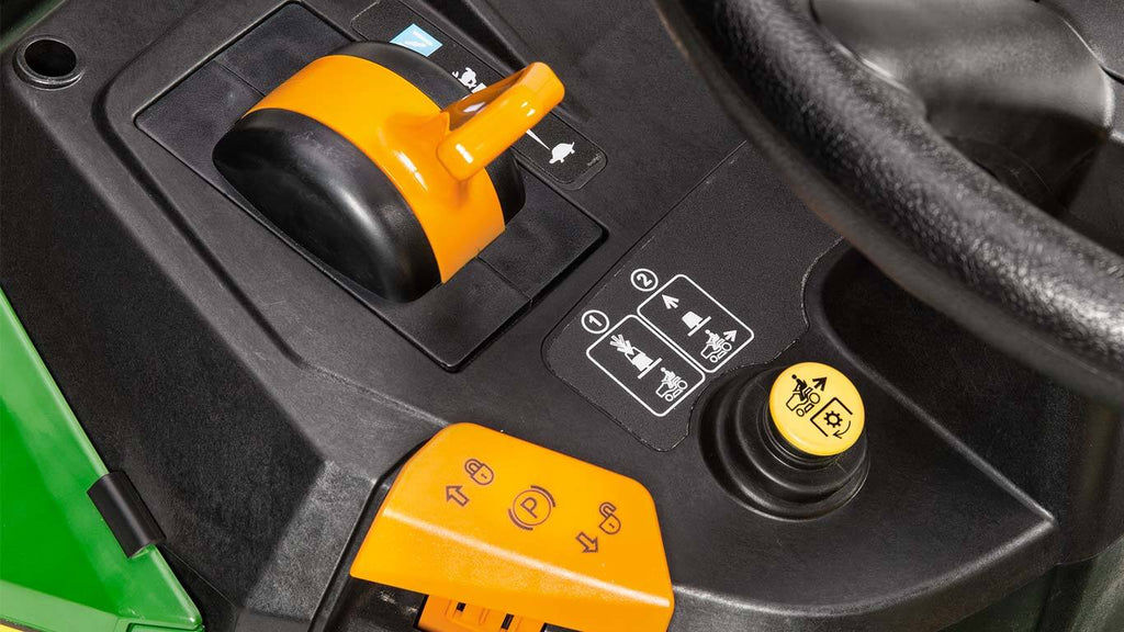Außerdem ist der X117R standardmäßig mit einem Heckkraftheber ausgestattet, mit dem verschiedene Geräte für praktisch alle Aufgaben in der Rasenpflege gezogen werden können.