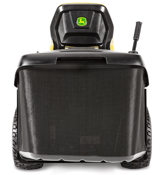Der hinten angebrachte Grasfangbehälter mit großem Fassungsvermögen macht das Aufsammeln von Grasschnitt und Blättern einfach. Die Heckmontage sorgt beim Mähen für eine ausgezeichnete Manövrierfähigkeit. Der 300-l-Grasfangbehälter nimmt so viel Grasschnitt auf, dass zwischen den Entleervorgängen länger gemäht werden kann. Die Entleerung des Grasfangbehälters kann vom Fahrersitz aus leicht bewerkstelligt werden. Der stabile Kunststoffboden weist selbst bei der Arbeit unter schweren Bedingungen eine lange Lebensdauer auf.