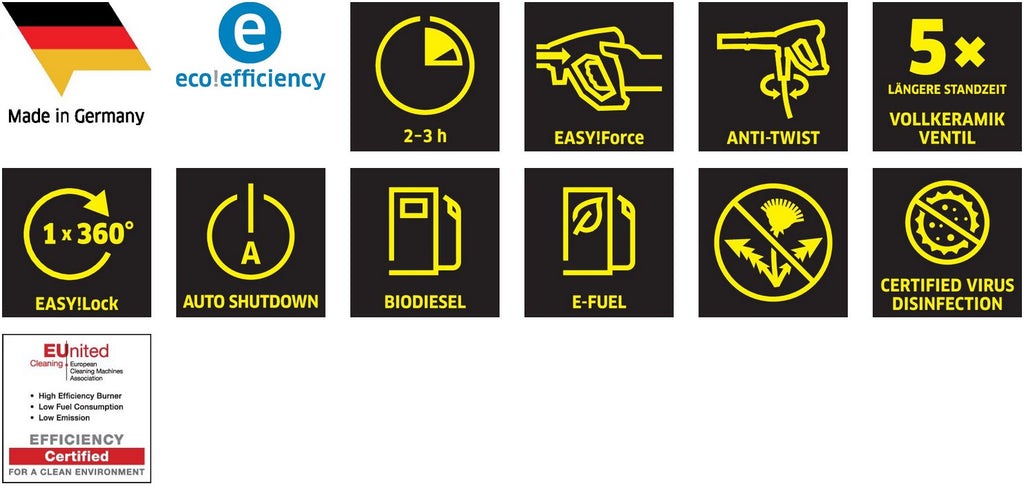 Der Kärcher bietet höchste Betriebssicherheit durch durchdachte Schutz- und Überwachungssysteme. Ein leicht zugänglicher Wasserfilter schützt die Pumpe zuverlässig vor Schmutzpartikeln, während Sicherheitsventile sowie Wasser- und Brennstoffsicherung eine dauerhaft hohe Geräteverfügbarkeit gewährleisten. Das integrierte Softdämpfungssystem (SDS) reduziert zudem Schwingungen und Druckspitzen im Hochdrucksystem welches für einen ruhigen, langlebigen und störungsfreien Betrieb sorgt. |