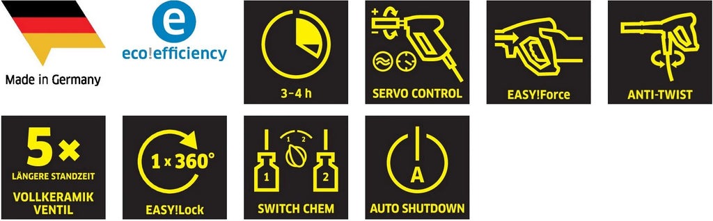 Die Servo-Control-Funktion sorgt bei Kärcher für eine spürbar höhere Wassertemperatur direkt am Zubehör. Dadurch wird die Reinigungsleistung deutlich verbessert, selbst bei hartnäckigen Verschmutzungen – für effizientes Arbeiten und optimale Ergebnisse in jeder Anwendung. |