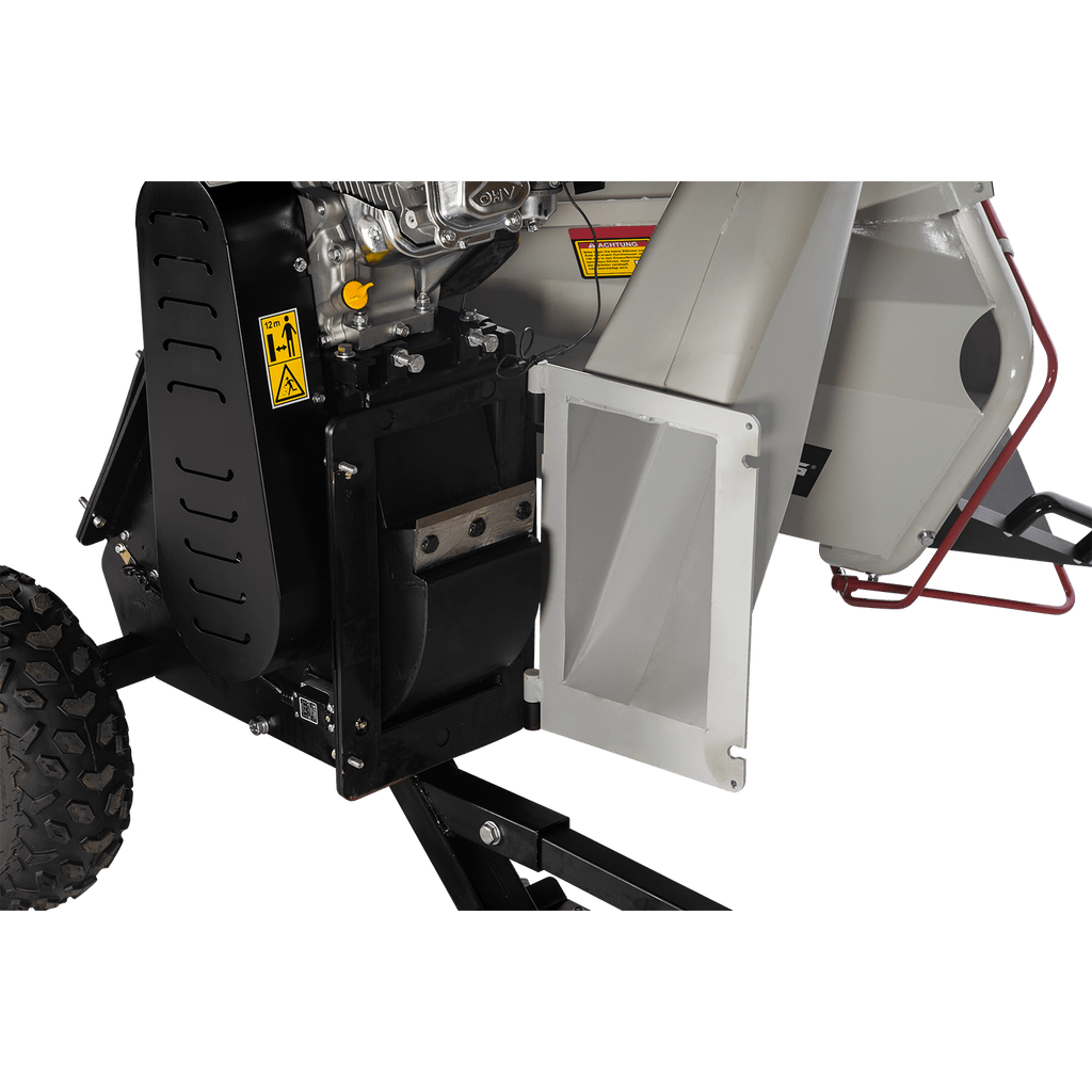 Die verstärkte Duplex-Messertrommel mit erhöhter Einzugskraft verarbeitet auch widerspenstiges Material zuverlässig und sorgt für gleichmäßige Ergebnisse. Mit dem verstellbaren Auswurfschacht und der Auswurfklappe kannst Du den Auswurf präzise auf Deine Bedürfnisse einstellen und das zerkleinerte Material gezielt ablegen. Zum Reinigen der Messertrommel lassen sich sowohl der Einfüll- als auch der Auswurftrichter einfach zur Seite klappen, was die Wartung besonders unkompliziert macht.