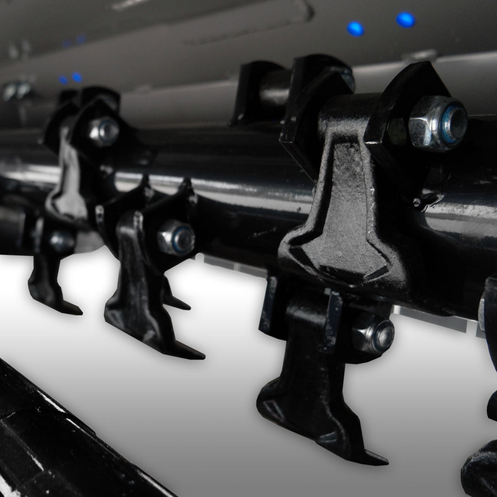 Die 24 speziell gehärteten, 0,8 kg schweren Hammermesser zerkleinern das Schnittgut bis auf ein Minimum. Auch sehr hohes Gras, buschiges oder strohiges Schnittgut sind mit diesem Mähwerk kein Problem!