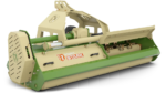 Der Antrieb erfolgt über ein Getriebe mit Freilauf und vier Keilriemen. Dank automatischer Federspannung bleiben die Riemen dauerhaft optimal gespannt – weniger Wartung, mehr Einsatzzeit. Die massive, seitlich gelagerte Nachlaufwalze mit 150 mm Durchmesser sorgt für exakte Höhenführung und gleichmäßige Ablage des Mulchguts. Zusätzlich ist der Mulcher hydraulisch um 15 cm nach links und 35 cm nach rechts verschiebbar. Voraussetzung ist eine doppeltwirkende Hydraulikeinheit Baugröße 3 am Traktor. Die Zapfwellendrehzahl beträgt 540 U/min, eine passende Gelenkwelle ist bereits im Lieferumfang enthalten.