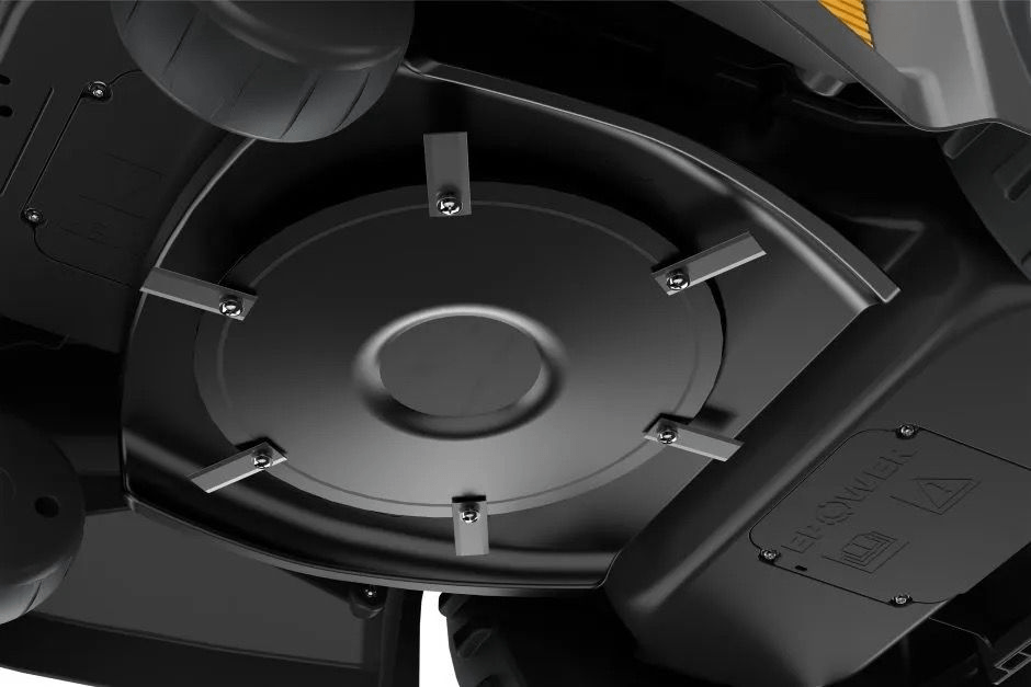Die Klingen sind aus einer speziellen Metallverbindung geschmiedet, die eine scharfe Kante beibehält. Für den unwahrscheinlichen Fall, dass eine Klinge beschädigt wird, lassen sie sich dank des einfachen Zusammenbaus des Mähdecks leicht austauschen.