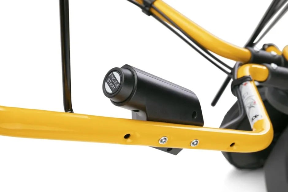 Der Motor wird per Schalter am Griff gestartet. Kein Seilziehen, kein Kraftaufwand. Der Lithium Akku ermöglicht zuverlässiges Starten auch bei häufigem Einsatz. |