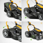 - Vier Mäharten: Auffangen, Mulchen, Seitenauswurf und Heckauswurf