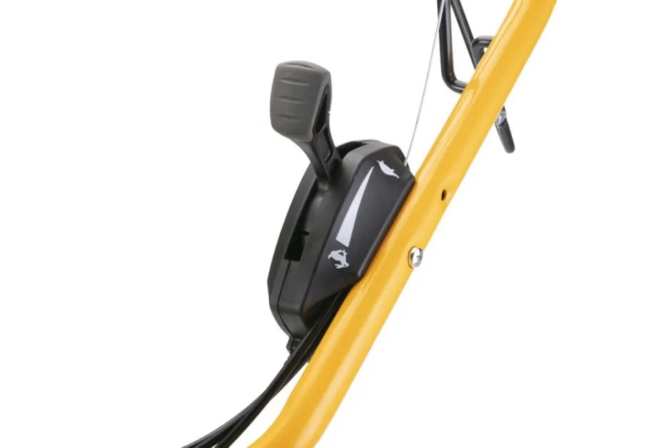 Dank des mitgelieferten Geschwindigkeitsreglers kannst du die Geschwindigkeit des Mähers mit nur einem Daumen an deine Laufgeschwindigkeit anpassen. |