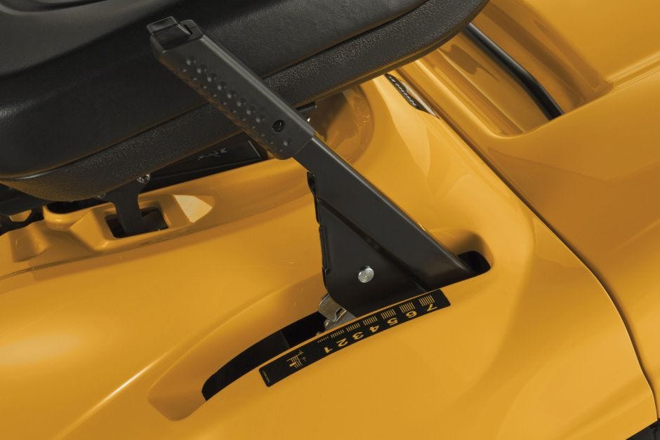 Dieser vielseitige Rasentraktor verfügt über sieben voreingestellte Schnitthöhen, mit denen Sie eine Vielzahl von Graslängen bewältigen können (die Einstellung reicht von 30-90 mm).