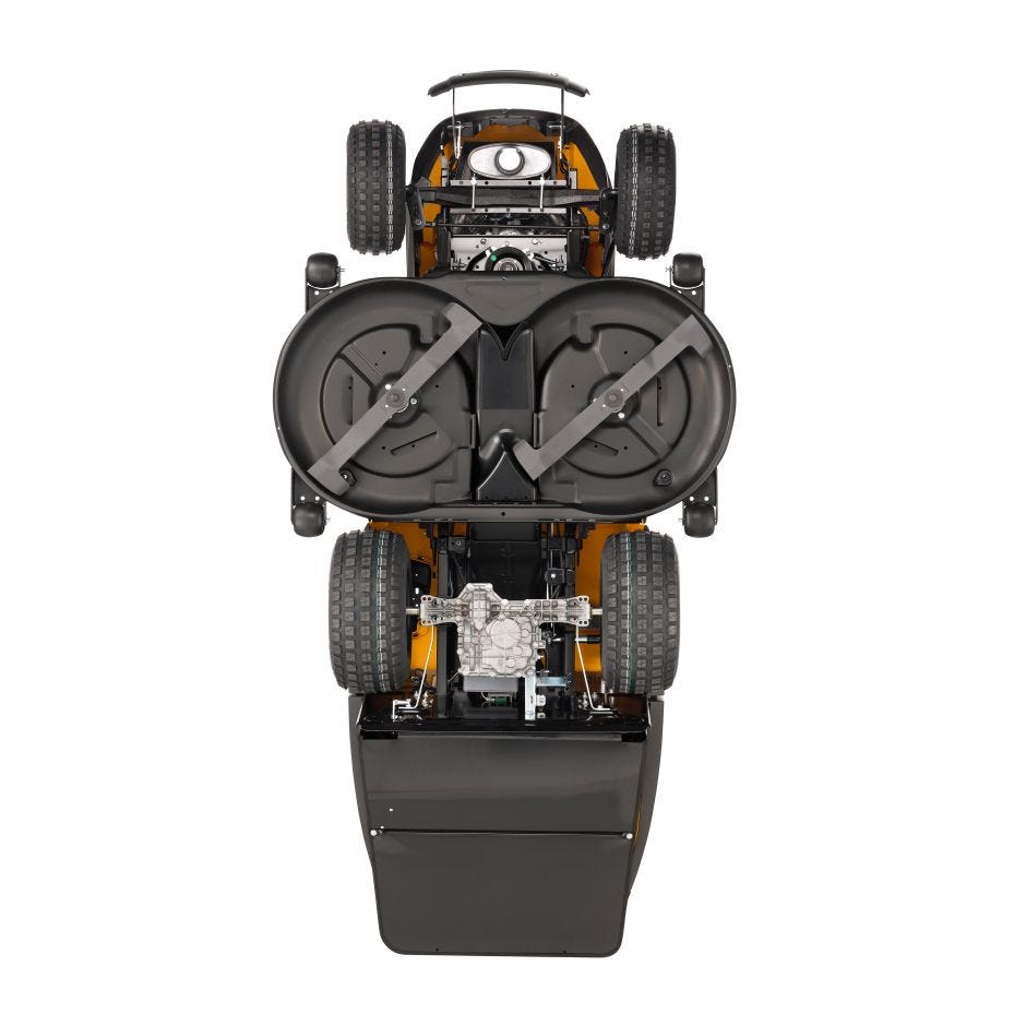 - Verstärktes 122 cm Mähdeck mit 4 Anti-Scalp-Rädern