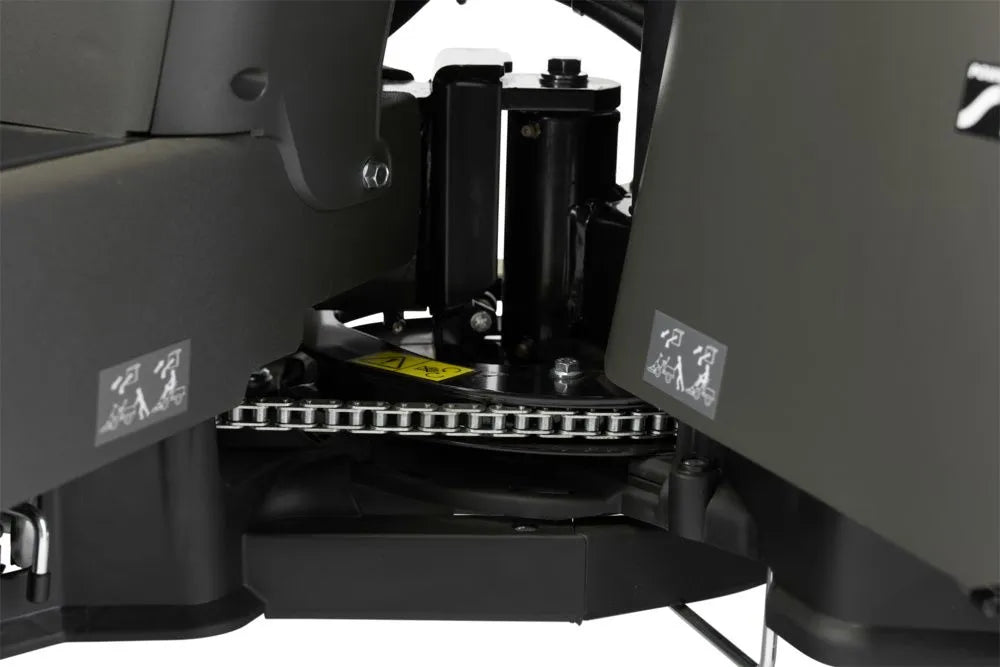 Die 50:50-Knicklenkung mit Servolenkung macht ihn wendig und präzise steuerbar. Hindernisse, Bäume oder Beete umfährst du mühelos. Das Frontmähdeck (nicht im Lieferumfang enthalten) ermöglicht dir eine ausgezeichnete Sicht auf den Arbeitsbereich, schneidet zuverlässig an Kanten entlang und erreicht mühelos enge Ecken. Die QuickFlip-Technologie erleichtert die Reinigung des Mähdecks erheblich.